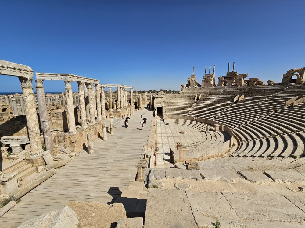 Unlike Sabratha’s Ancient Theatre quiet solitude, Leptis Magna feels alive. You’ll find tourists exploring, local families wandering, and souvenir stalls or cafés near the entrance.